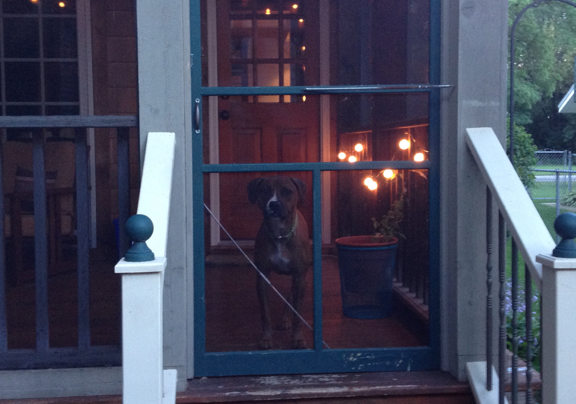 We made Roo wait on the porch, and she wasn’t happy about it.