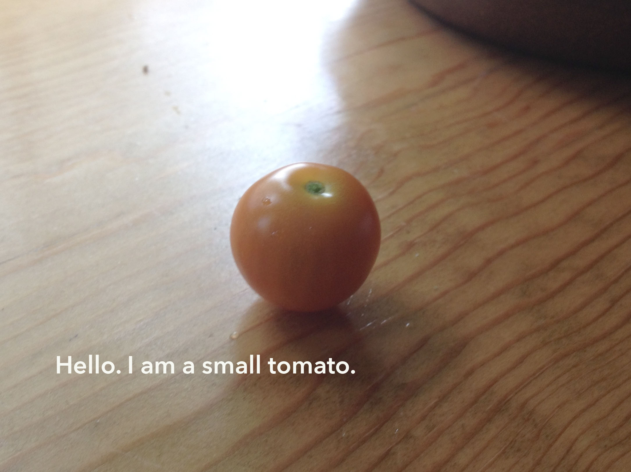 This tomato is so anemic that it looks like an apple. It is an interesting coincidence that real tomatoes will be available just about the time this workshop is over.