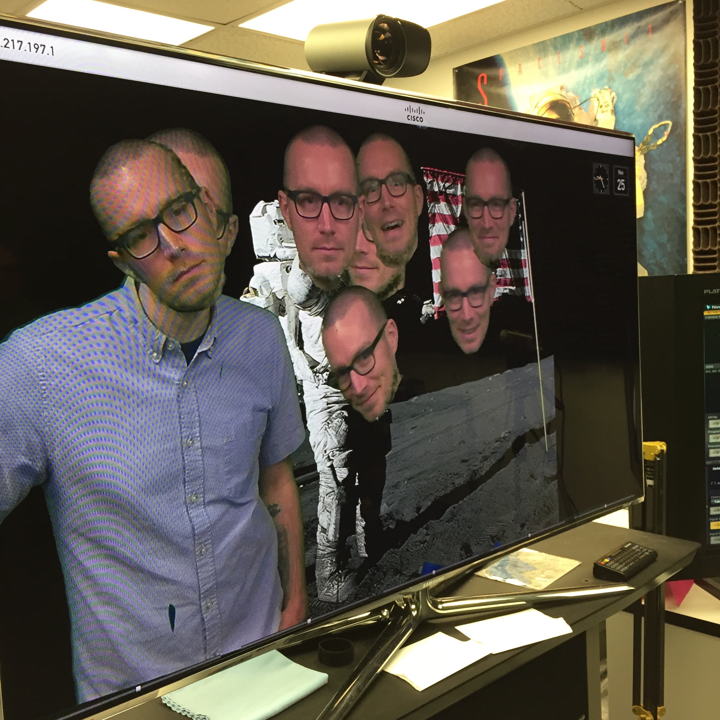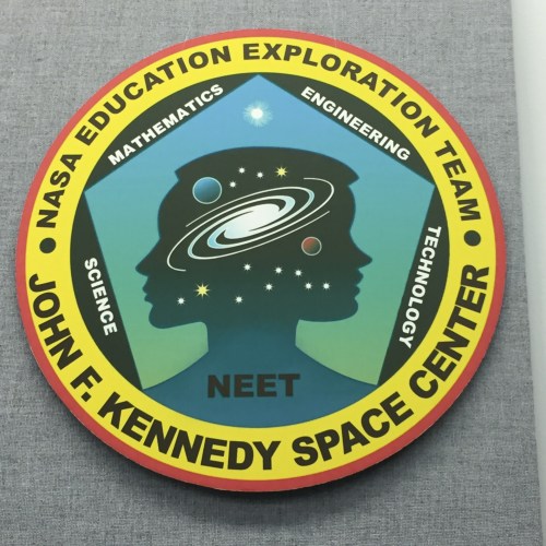 That’s mostly because in the 24 hours we’ve been here, we’ve been with Rae, and that alone is great; but it’s also because we just got back from spending the day hanging out at the Kennedy Space Center, where Rae works. Specifically, she works in the Center for Space Education doing digital learning programming for students all over the country. A big part of what she does is working on videos for the students–some are pre-recorded and some are live video chats. She teaches them about science and space and does cool experiments. Today, she showed us around her studio.