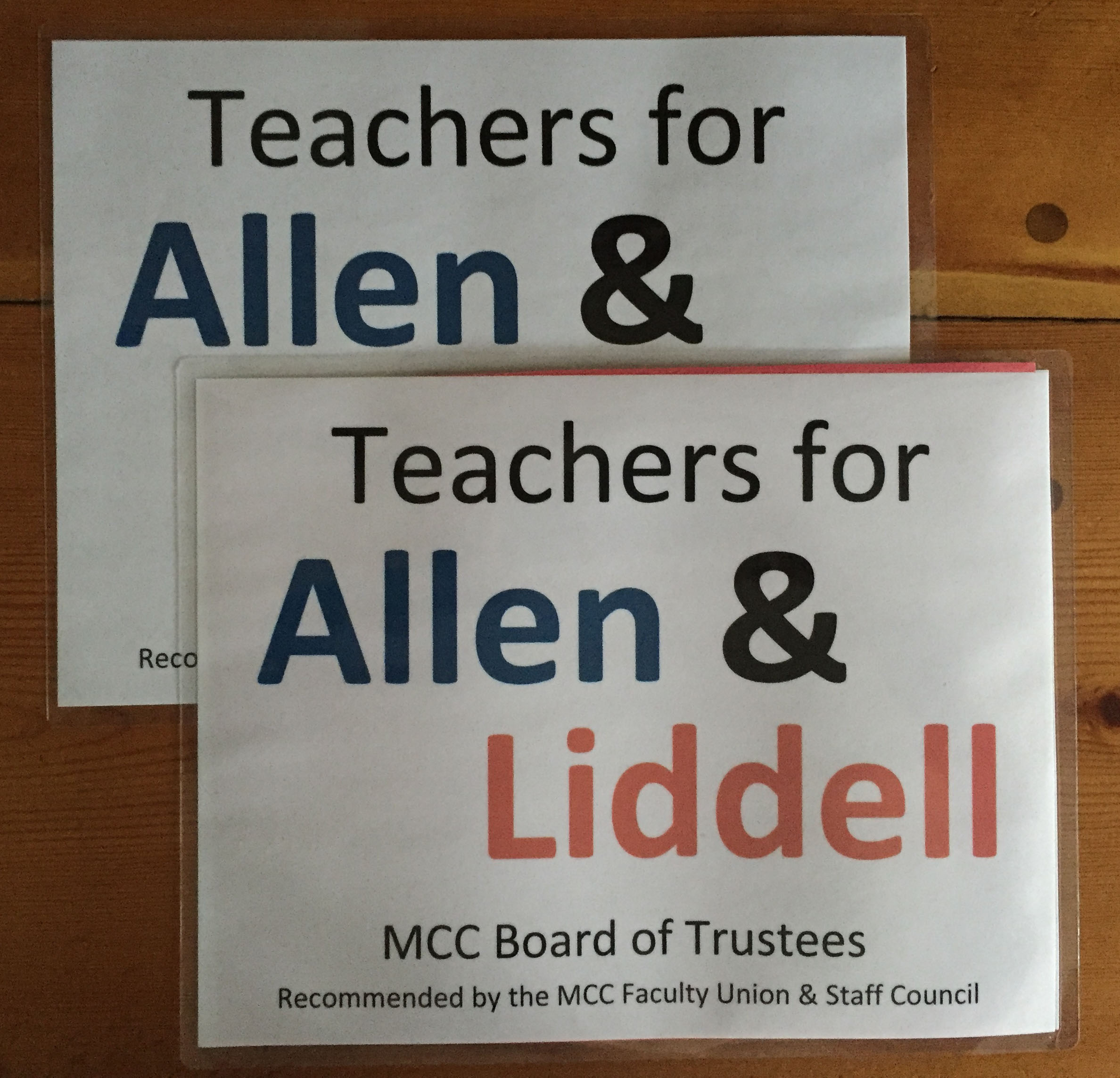 Liddell and Allen are friends of MCC: they are pro-faculty, pro-student, and pro-education. MCC’s faculty and staff unions have both endorsed Liddell and Allen. I’d place a safe bet that nearly all (maybe 99.99%) of MCC’s employees are going to vote for Liddell and Allen. I’m voting for Liddell and Allen.