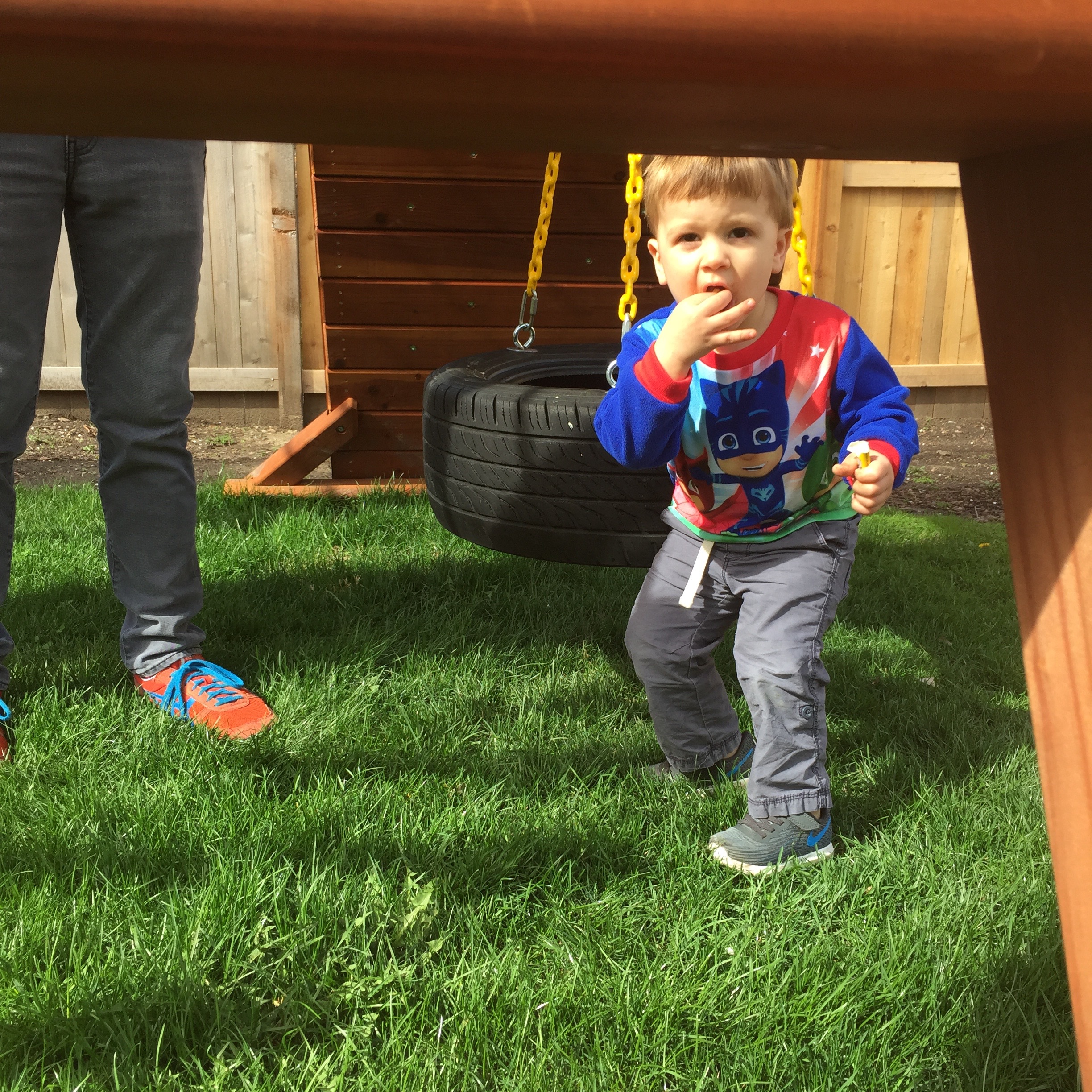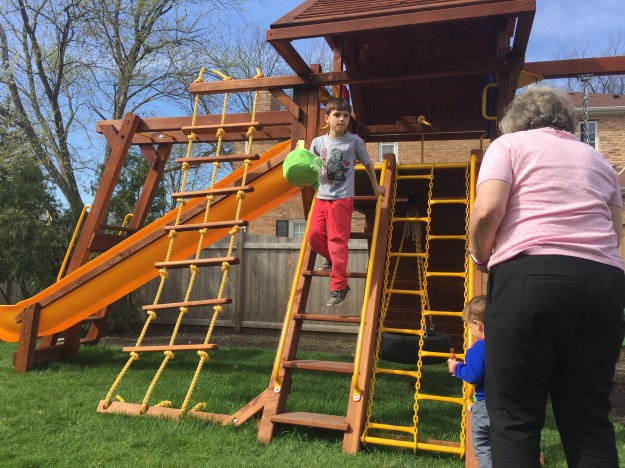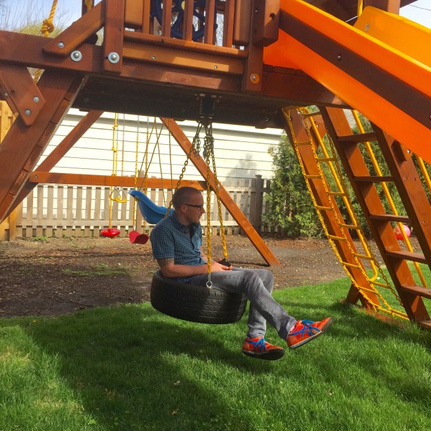T. and I spent Easter with my nerd-tastic family, and we played around on Bo and Leo’s new jungle-gym. It was a hell of a lot of fun.