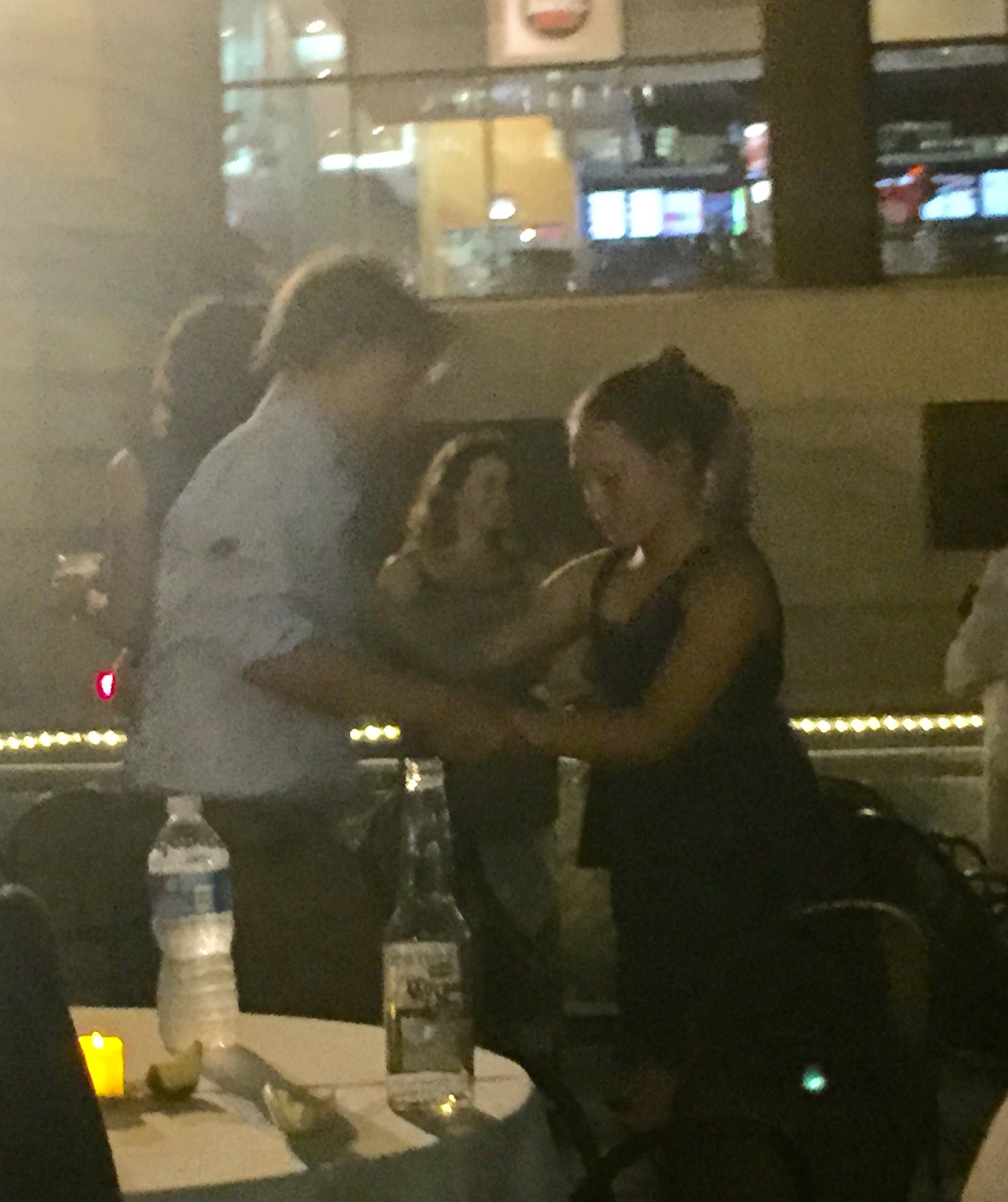 The party was great — late ’80s and ’90s music, good food, and fireworks from Navy Pier — and although I didn’t get Trevor to dance with me, I got him to give me a semi-smile in this picture: