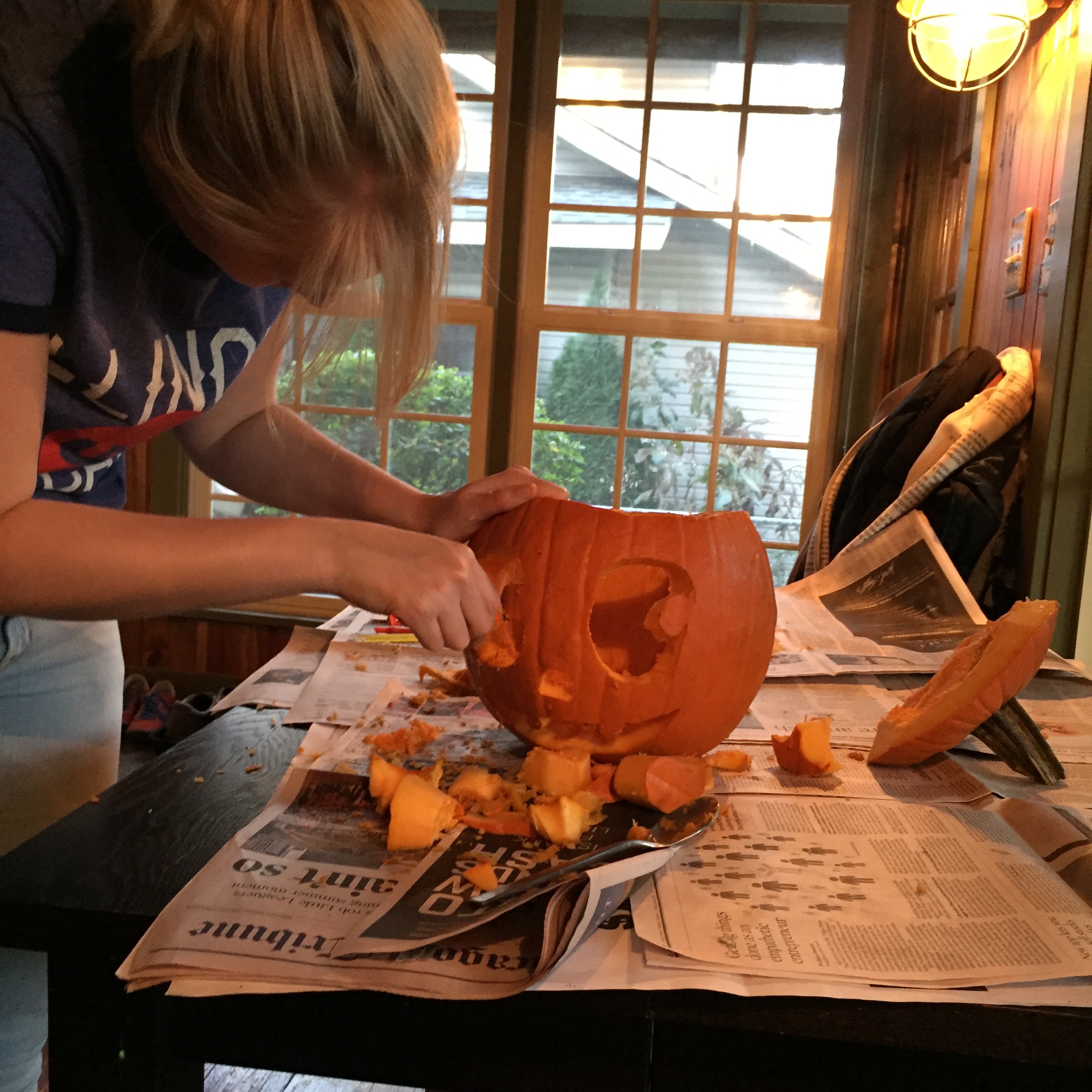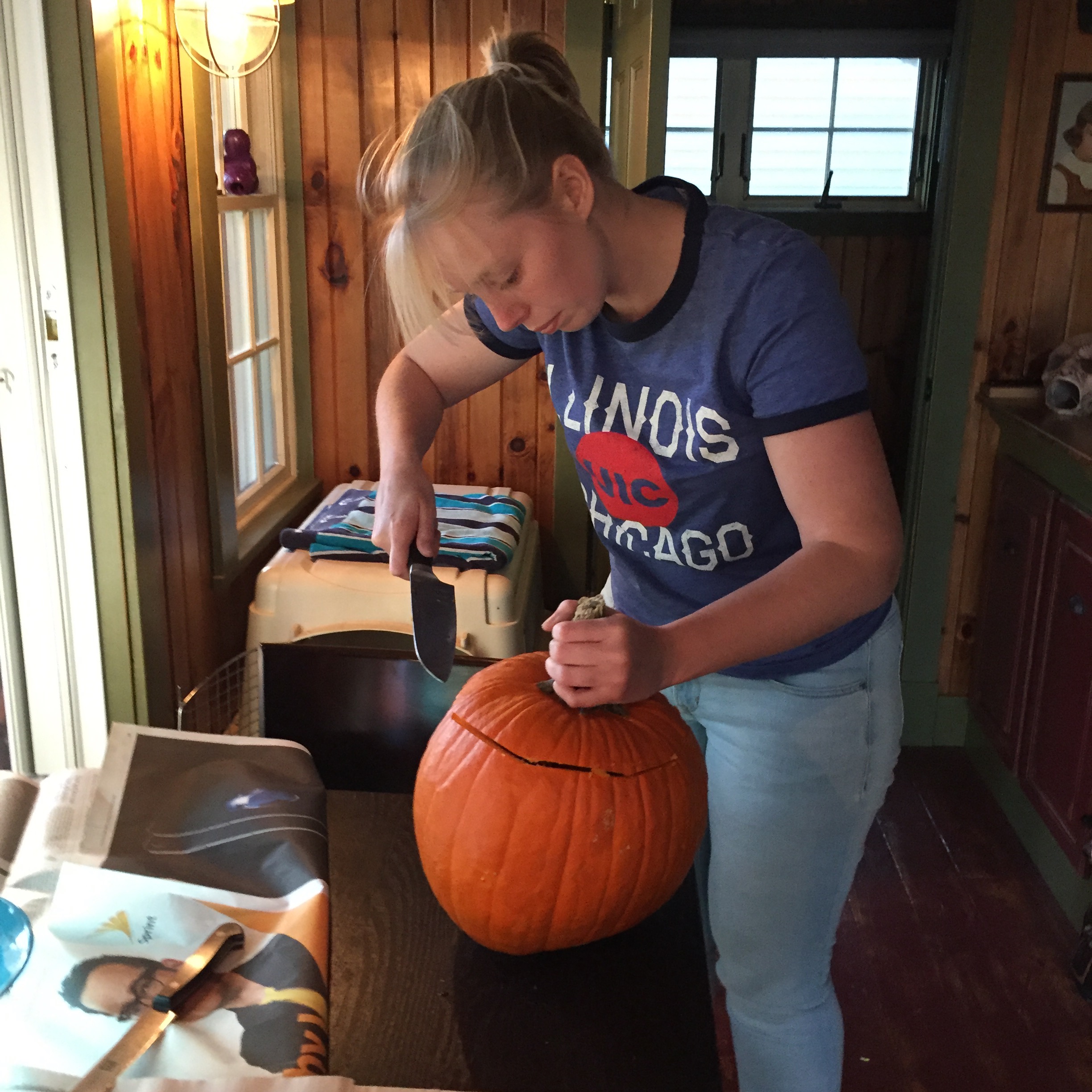 The first week that Noëmi, our visiting Dutch scholar, was here in the States was jam-packed and a heck of a lotta fun. She observed teachers at MCC, she got to see her first university campus to attend class with me at UIC, and she carved her very first jack-o-lantern for Halloween.